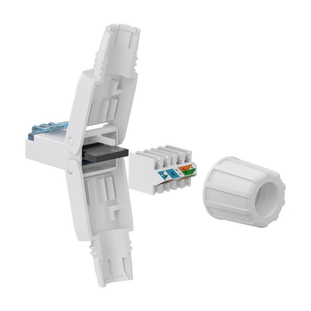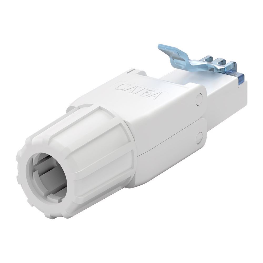 The 65941 Connector RJ45 UTP Cat.6A Male tool-free, is a CAT 6? Unshielded RJ45 male (8P8C) Connector for Field Assembly. It is suitable for 5.0-8.5 mm cable diameter, with solid conductors (AWG 22/1 - 24/1) and stranded conductors (AWG 22/7 - 24/7). The 65941 provides screw cap and features tool-free IDC mounting with its handy folding mechanism. The CAT 6? connector supports Power over Ethernet (PoE++, 4PPoE, Ultra PoE), according to IEEE802.3bt as well as 10GBase-T (downward compatible), while its RJ45 connector is TIA 568A/B colour-code.