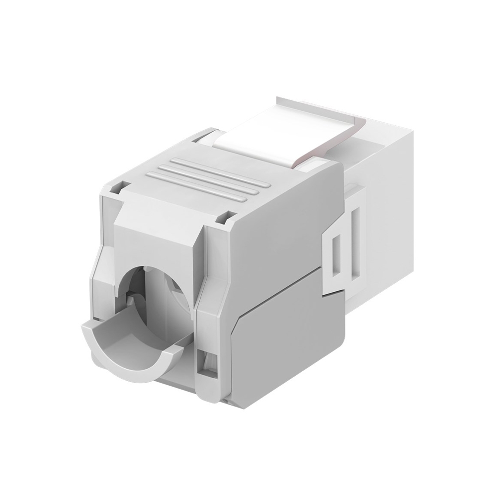 The 90867 Keystone Jack RJ45 UTP Cat.6A Female 180° Tool-Free white, is a keystone module RJ45 CAT 6A, UTP, 16.5 mm wide, crocodile type, terminal strip for tool-free IDC mounting. It features RJ45 jack socket with robust plastic housing for a perfect transmission of electrical or optical signals, with CAT 6A jack socket for Ethernet cables with an outer diameter of 5.0 - 9.0 mm. The modul is also suitable for Power over Ethernet (PoE+) according to IEEE 802.3at and it is compatible with RJ45 jack socket for installation in Keystone patch panels, Ethernet wall sockets and housings. Main applications are in laboratories and workshops, as well as in advanced home entertainment and network installations. The Ethernet connector is for termination of solid wires of 0.48 - 0.65 mm (AWG 22 - 26). Additionally, its RJ45 connections are TIA 568A/B colour-coded and it is PoE and PoE Plus according to IEEE802.3at.