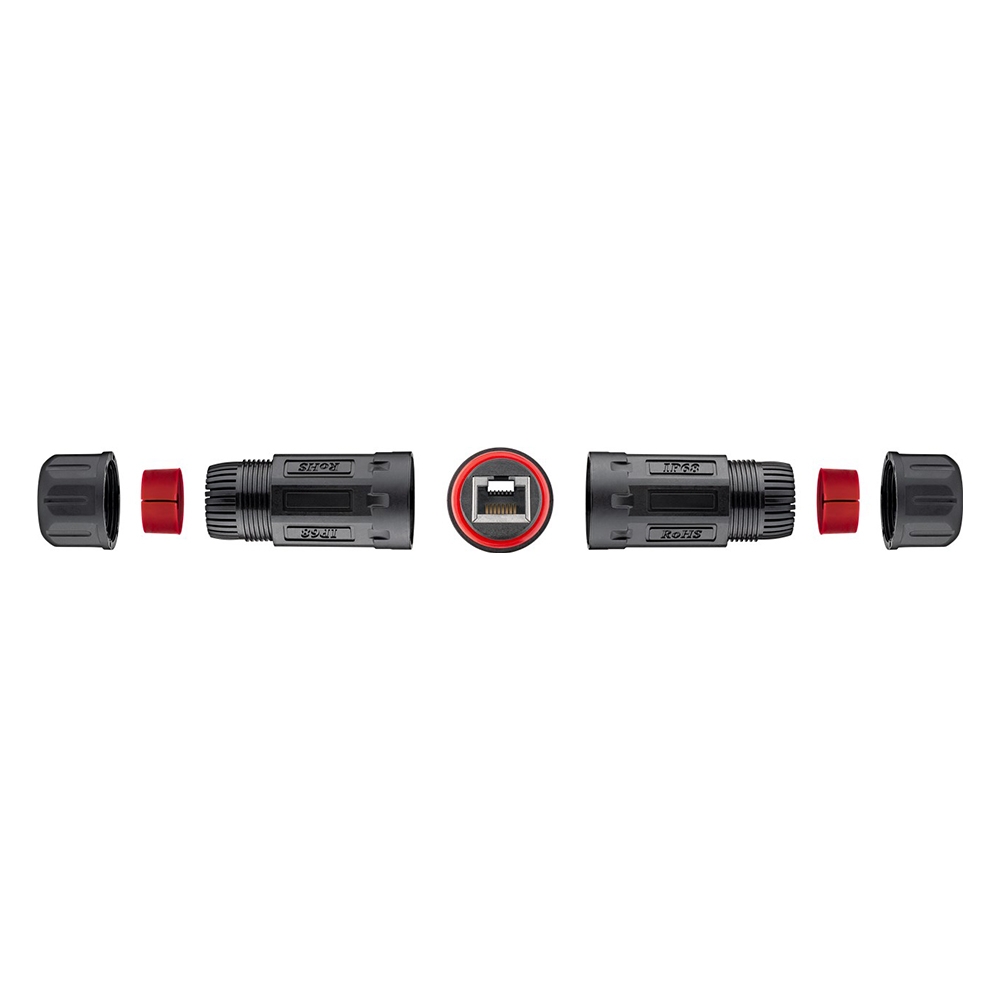 The 79566 Coupler RJ45 Cat.6 Female to Female Outdoor IP68, is a dustproof and waterproof coupler with 2x RJ45 female (8P8C), category CAT 6 Outdoor RJ45 , with an IPxx rating of IP68. This cable connector is designed for 8-wire connection, extension, repair or rerouting of CAT 6 data cables. The major advantage of this connector over CAT connection boxes is its extra slim design, which facilitates and eases the installation, even in hard to reach points, e.g. in cable ducts. Additionally, it provides shielded cable connection (STP) and its cable connector is manufactured for outdoor and industrial applications, offering protection against dirt and moisture (protection class IP68). It features max. data transmission of 250 MHz and it is suitable for terminated patch cables with a cable diameter of 4.0 - 8.0 mm. Also, it supports PoE+ applications (IEEE 802.3at).