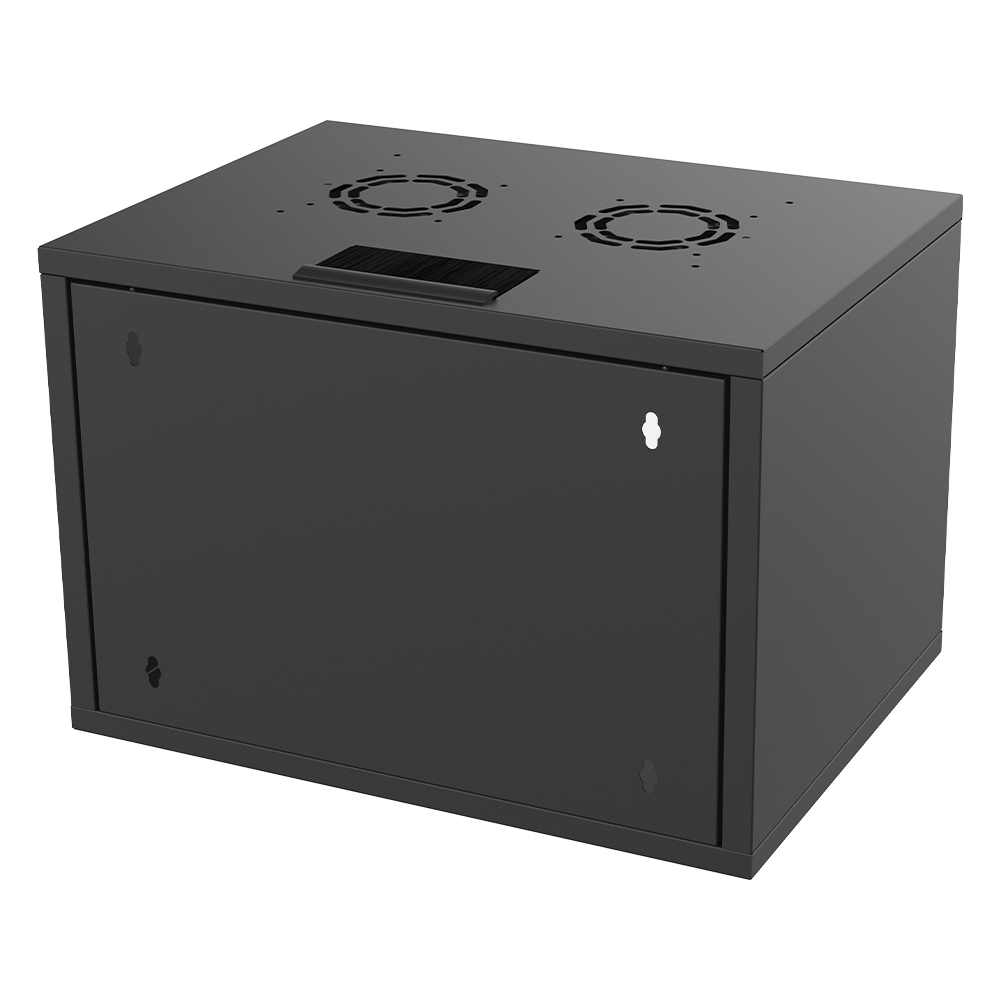 EDISION SOHO Wall-Mounted Cabinet 19" 540x400 7U black ''flat pack'', is an excellent choice of basic rack cabinet, in a compact ''flat pack'' package for convenient transport, with all the individual parts inside for quick and easy assembly. It has a 4.0mm glass front door with security lock, 2 cable routing ports on the top and bottom, passive ventilation on the top, which is also easily upgraded to active, with the addition of the extra optional product code of fan KIT.