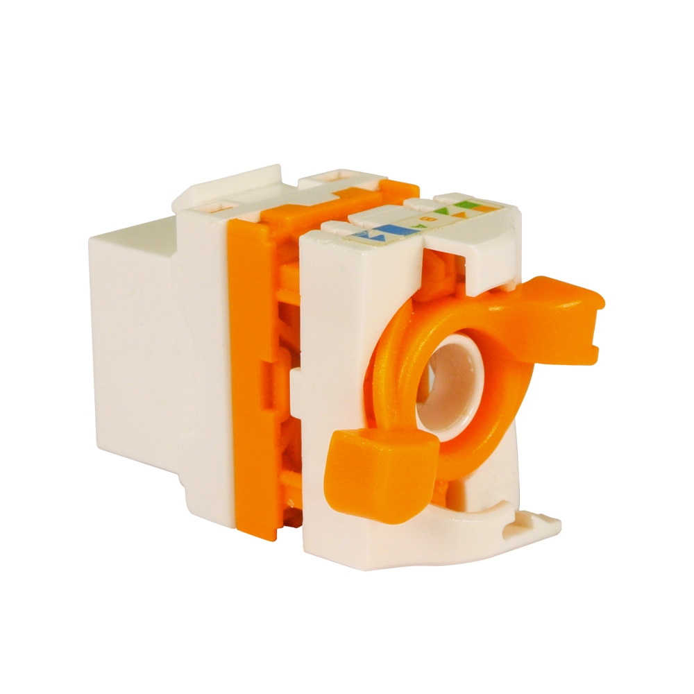 Το TELEVES 209905 Keystone Jack RJ45 UTP Cat.6 Θηλυκό 180° Tool-Free white, είναι ένα θηλυκό βύσμα RJ45 τύπου Wing nut UTP Cat 6 για καλώδια δεδομένων, επαναχρησιμοποιήσιμο και εύκολο στη σύνδεση, καθώς δεν απαιτούνται ειδικά εργαλεία. Το βύσμα επιτρέπει την σύνδεση περιστρέφοντας με τα δάχτυλα την βίδα τύπου "πεταλούδα" που είναι ενσωματωμένη στο πίσω μέρος. Είναι συμβατό με την τεχνολογία PoE/PoE+/PoE++ (Power over Ethernet), επιτρέποντας στο καλώδιο να τροφοδοτεί συσκευές δικτύου. Ένα ακόμα χαρακτηριστικό του, είναι ότι είναι επαναχρησιμοποιήσιμο έως και 750 φορές (εκτιμώμενο), επομένως μπορεί να αφαιρεθεί και να επανεγκατασταθεί χωρίς να υποβαθμιστεί ή να χάσει λειτουργικότητα, σχεδιασμένο για εφαρμογές πολλαπλών συνδέσεων. Είναι ιδανικό για Cat 6 UTP, Cat 5e UTP και Cat 5 UTP και διαθέτει είσοδο καλωδίου στην μπροστινή πλευρά (180°), με ετικέτες με διαγράμματα σύνδεσης (A ή B) στο βύσμα, το οποίο έχει επιχρυσωμένες ακίδες 50 microns.