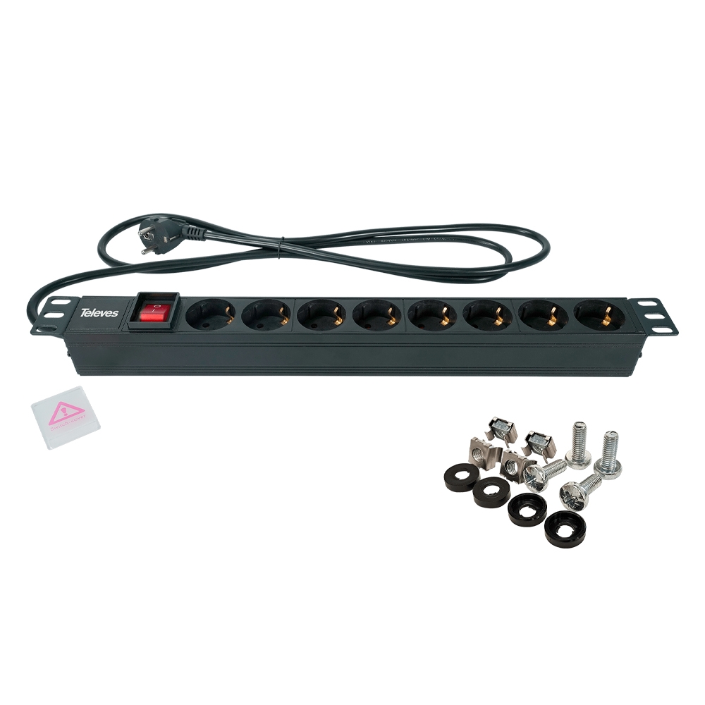 To TELEVES 533001 Πολύπριζο Rack 19'' 1U Alu 8 Σούκο 16A 3840W με διακόπτη, καταλαμβάνει χώρο 1U σε rack 19" και παρέχει 8 σημεία τροφοδοσίας 220V με θηλυκό βύσμα Schuko. Διαθέτει διακόπτη φωτεινής ένδειξης με προστατευτικό κάλυμμα και καλώδιο 2,00 μέτρων, με αρσενικό βύσμα Schuko, για σύνδεση στο δίκτυο τροφοδοσίας 220V.