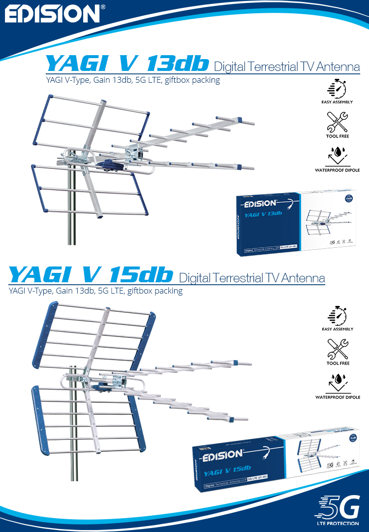 NEW V-type EDISION ANTENNAS. The YAGI V 13db 5G 21-48 and YAGI V 15db 5G 21-48!