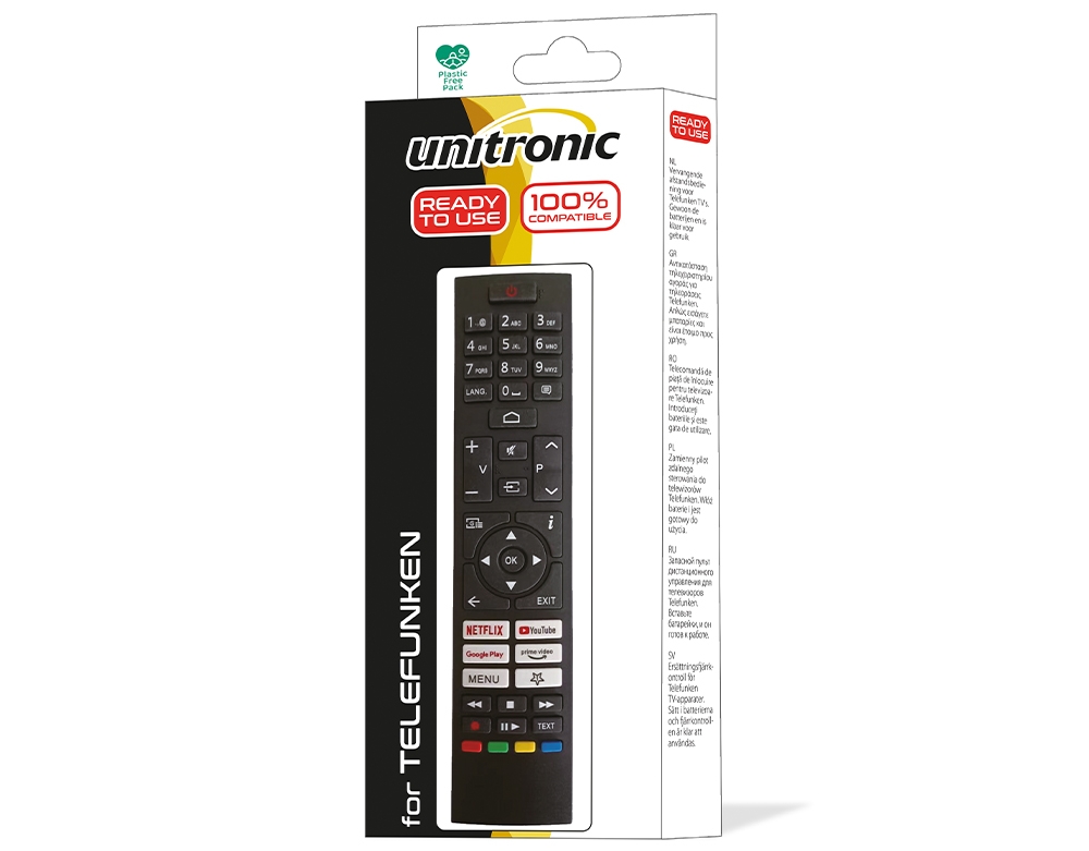 The IR remote control Unitronic Compatibility TLF/VESTEL/BEKO is pre-programmed and ready for use on TELEFUNKEN/VESTEL/BEKO television sets.