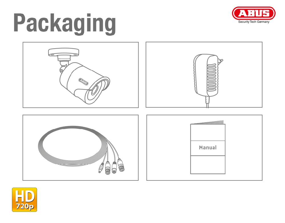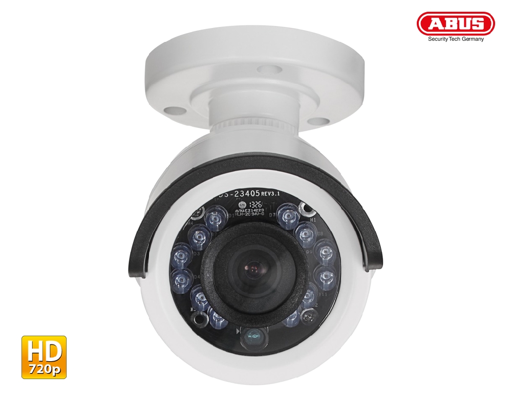 ABUS HDCC41500 outdoor/indoor tube-type camera provides detailed high resolution, thanks to 1280 x 720 pixels at 25 frames per second, 24 IR LEDs for night vision, up to approx. 10 m range, noise reduction (DNR) for clear images even at low light levels, automatic day/night switching, plug-and-play installation and connection using a BNC connector, including for existing analogue cables and all these in a sturdy weatherproof camera housing (IP66). Thanks to the supplied combined cable and plug-and-play installation, the camera can be mounted on the ceiling or wall.